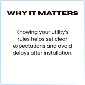 Your utility company is involved in the approval process for all grid-tied solar installations. Before your system can be activated, the utility must approve interconnection, which allows your solar equipment to feed energy into the grid. Some utilities also offer net metering, a program that gives you credits for excess electricity your system produces. In certain cases, the utility may require a meter upgrade or additional inspections. Because every utility has its own rules and timelines, knowing their requirements in advance helps avoid delays and ensures a smooth activation process once your system is installed.
